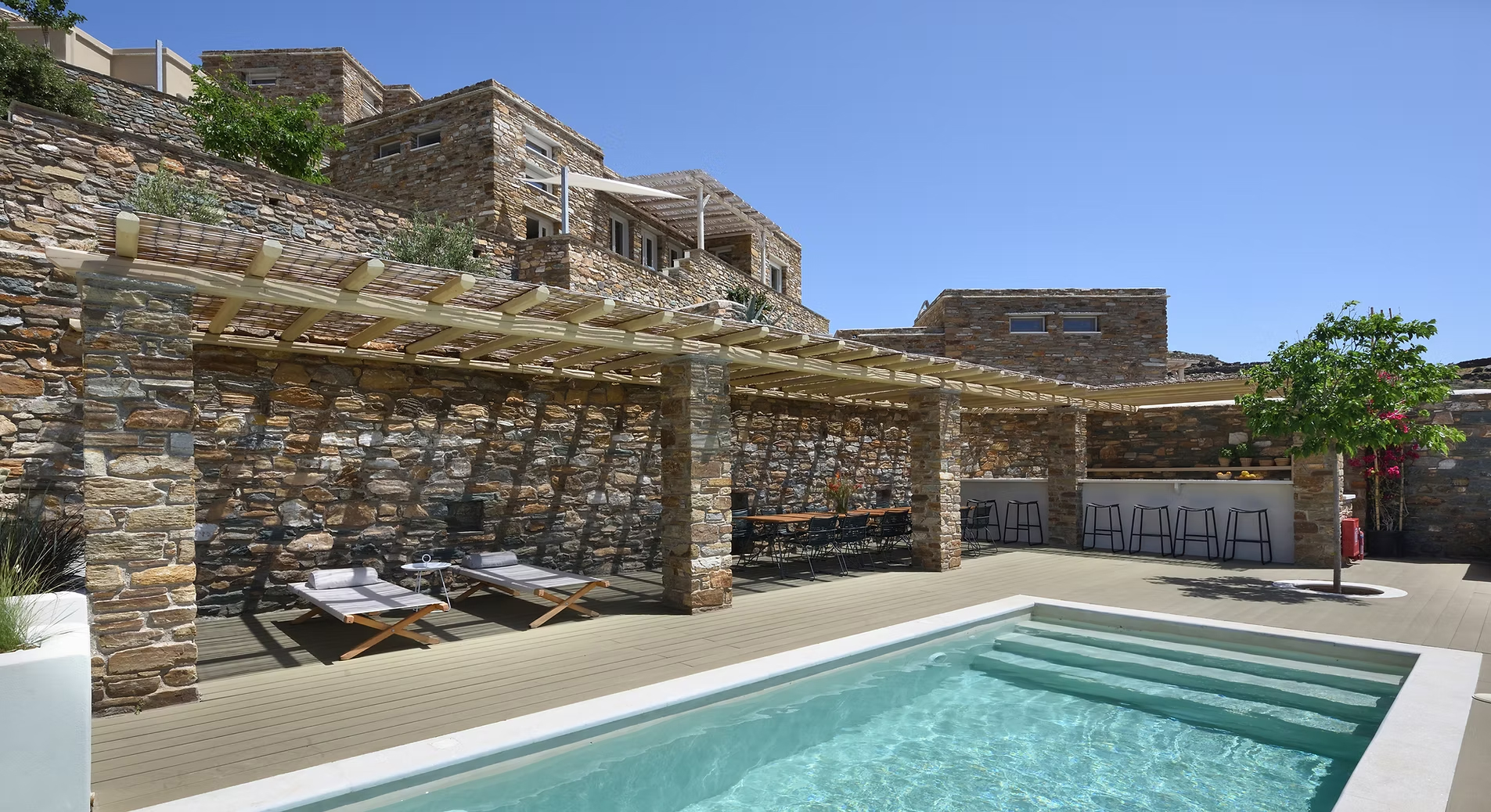 The seven villas are ideal for groups up to 25 guests who like their own privacy and shared common spaces. Each villa has ample space, private gardens and a breath-taking view of the sea and the surrounding landscape. Two common pool areas are available.